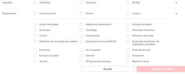 Et non vous ne rêvez pas, l'option accessibilité aux personnes à mobilité réduite est belle et bien située après l'admission des animaux domestiques. C'est le pompon ! Je tiens à préciser qu'il s'agit là d'un site très connu et à la portée internationale. Voilà donc comment sont considérés les PMR. Il y a donc une option située dans un vague sous-menu, après la connexion Wifi et l'accueil des chiens et chats ! À noter également le nombre d'hébergements qui proposent un accès. Il y en a moins tout simplement moins que pour l'accueil des animaux (tests réalisés sur plusieurs villes françaises et européennes).