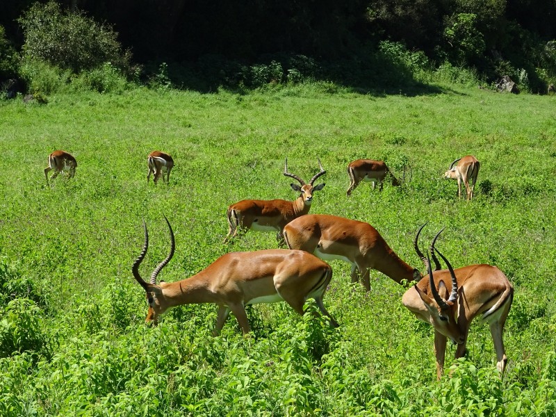 Le matin, nous sommes restés assez proche de l'hôtel, au pied-même du lac. Nous avons à nouveau pu observer les rhinocéros, antilopes, zèbres, mais aussi les girafes. Grandes, majestueuses et gracieuses. C'était un véritable spectacle de les observer. Et ce spectacle était d'autant plus grand que nous avions la chance de voir tous ces animaux cohabiter naturellement et sereinement dans un tel environnement.