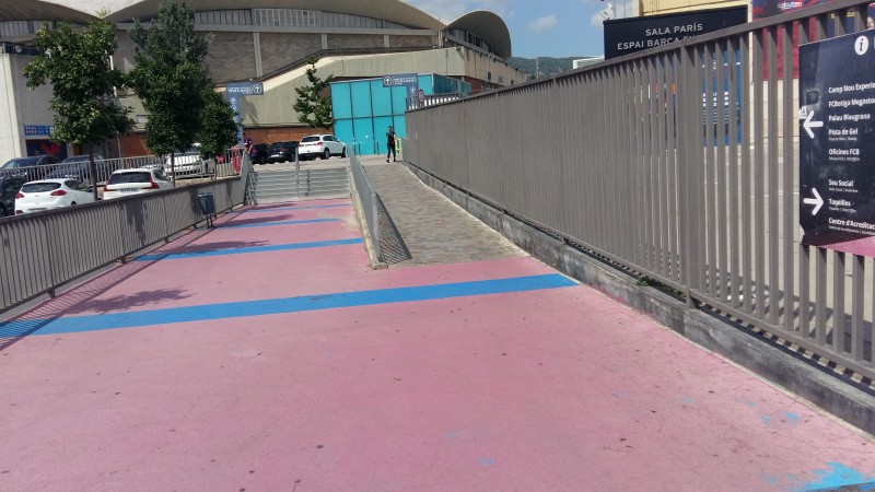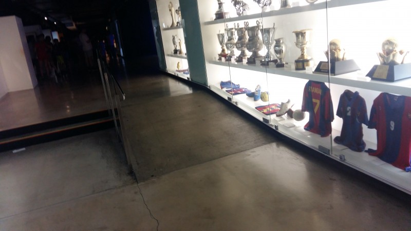 Pour se rendre dans le celui-ci, le chemin est clair et facile, exceptée une pente plutôt prononcée pour accéder aux guichets. Une fois les tickets achetés, un ascenseur suivi de plusieurs pentes douces pour parvenir à l'entrée du musée où commencera la visite. Globalement, elle se déroule sans encombre mais 1 ou 2 escaliers obligent à faire un petit détour pour continuer. Des WC sont accessibles avant la fin du musée, ceux-ci sont dépourvues de poubelle et de lavabo. Après le musée, pour accéder aux gradins, une rampe est disponible mais non indiquée, il faut alors demander au personnel où elle se situe. Cette rampe ne permet d'accéder qu'à une partie plus large que le reste afin d'observer la pelouse de ce stade mythique. La sortie est très mal indiquée (et ne pas parler espagnol se révèlera être un sérieux obstacle). Avec l'aide du personnel, vous devrez emprunter d'autre ascenseurs pour sortir et accéder à la boutique. Celle-ci comporte 3 étages et un ascenseur les dessert.