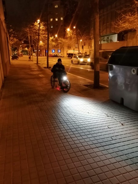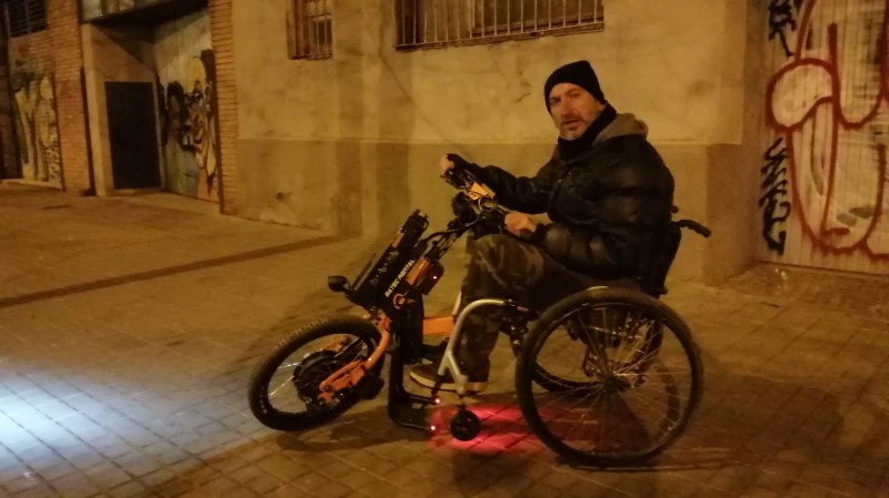 Avec non seulement toutes les commandes d'un seul côté, elle présentait aussi l'avantage d'avoir un système d'ancrage/d'accrochage simple avec le fauteuil et facilement réalisable à une main. (Après la pose d'un système pour les châssis pliant).J'ai donc pris rendez-vous pour pouvoir essayer ce modèle. Effectivement, pour l'installer sur le fauteuil ce fût relativement facile. Ça ne nécessitait pas un acte précis, juste un coup et une position à prendre pour éviter de forcer. Lors des essais, j'ai été agréablement surpris des sensations. Rien à voir avec la sensation d'avancer avec un fauteuil électrique, j'avais vraiment la sensation de liberté avec cette roue. Par contre, elle était très "nerveuse". L'accélérateur était sensible et pas évident à doser pour moi. Mais bon je me suis dit qu'avec de la pratique...